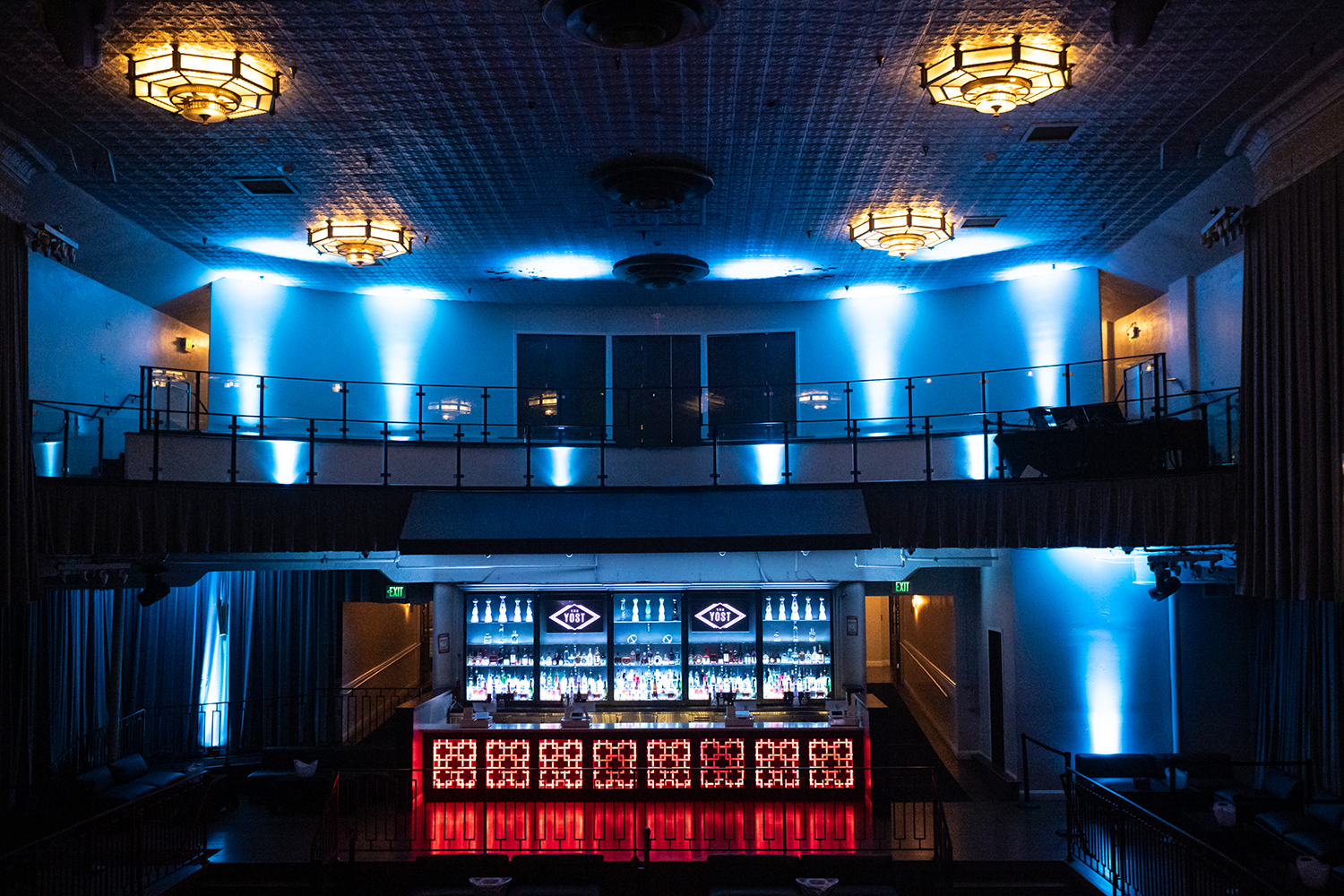Overlooking the main theater, the Mezzanine offers a breathtaking view of The Yost’s historic stage and dazzling ambiance below. This elevated space combines intimacy with grandeur — the perfect setting for cocktail hours, VIP gatherings, or private moments that still feel part of the celebration.